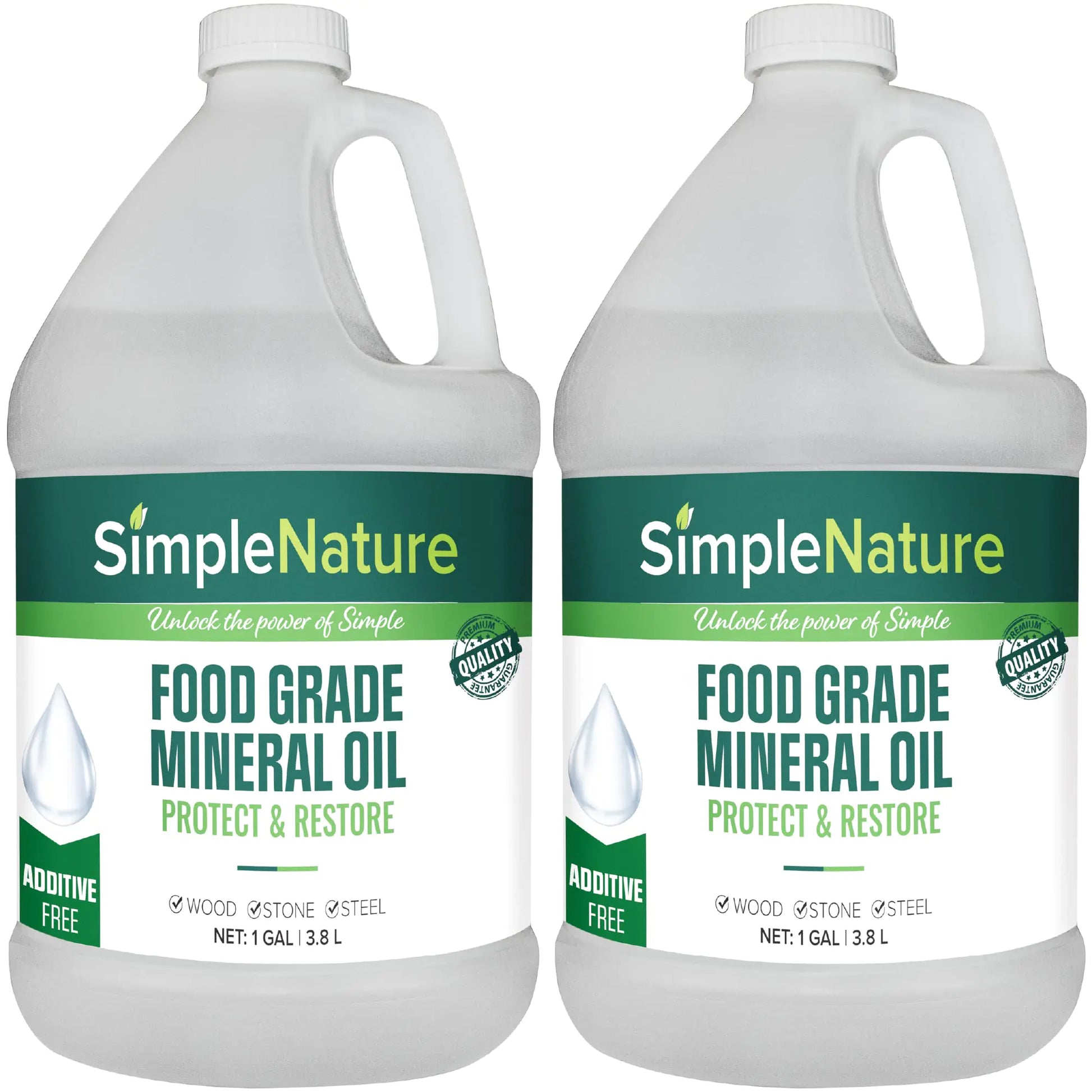 SimpleNature Food Grade Mineral Oil - 2 Gallons - for Moisturizing Lubricating Restoring & Protecting Wood Cutting Boards Butcher Block Countertops and Stainless Steel